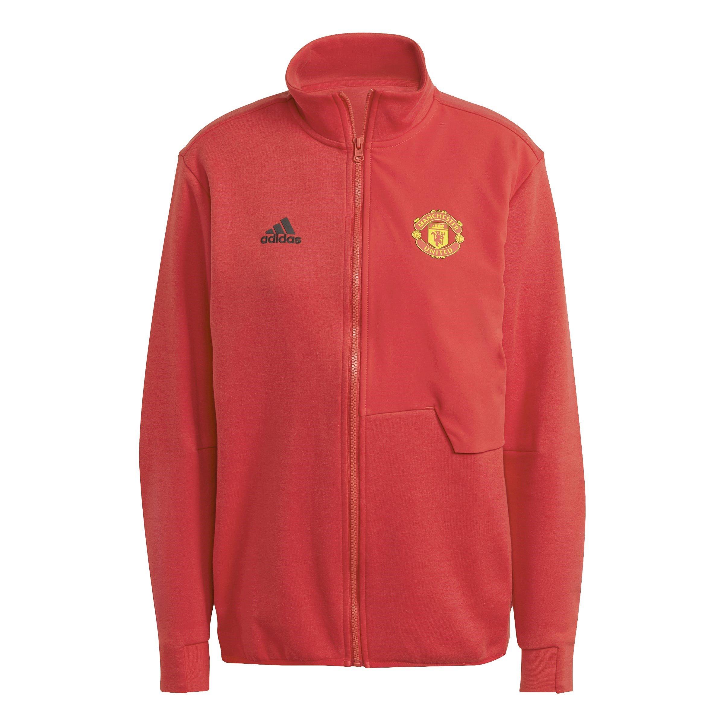 Beeindrucke alle, wo immer du hingehst, wenn du die adidas Manchester United Anthem Jacke für Frauen trägst. In einem lebendigen Rot präsentiert, um deine Unterstützung für die Red Devils sofort zu zeigen, wird diese Hymnenjacke dein vertrauter Begleiter an deinem nächsten Spieltag oder sogar deinem nächsten Treffen mit Freunden sein.