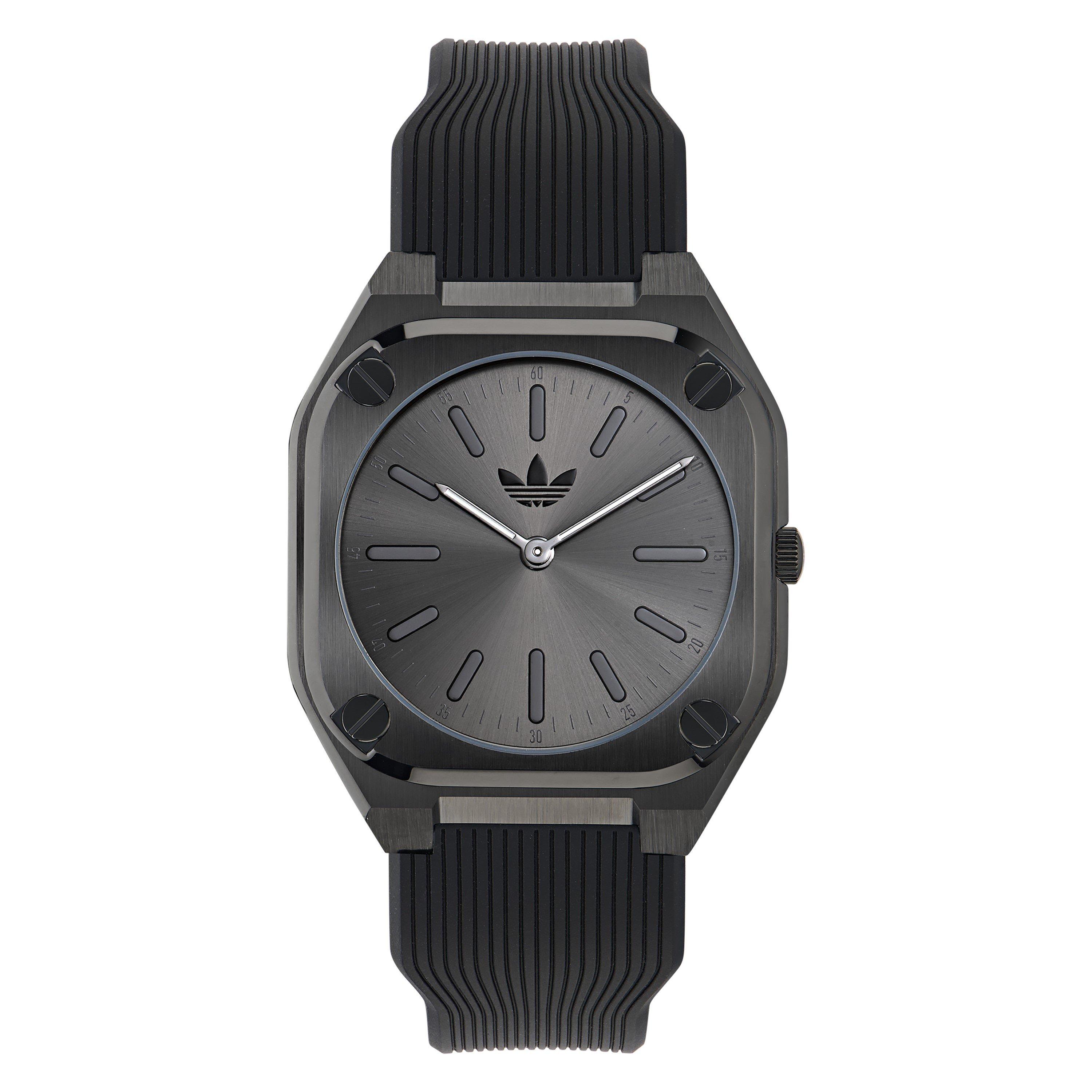 adidas Originals City Tech Thin Quartz Uhr vereint präzise Zeitmessung mit urbanen Designelementen. Das schlanke Profil zeigt klassische adidas-Details, die gegen eine elegante Form für den täglichen Stil gesetzt sind.
