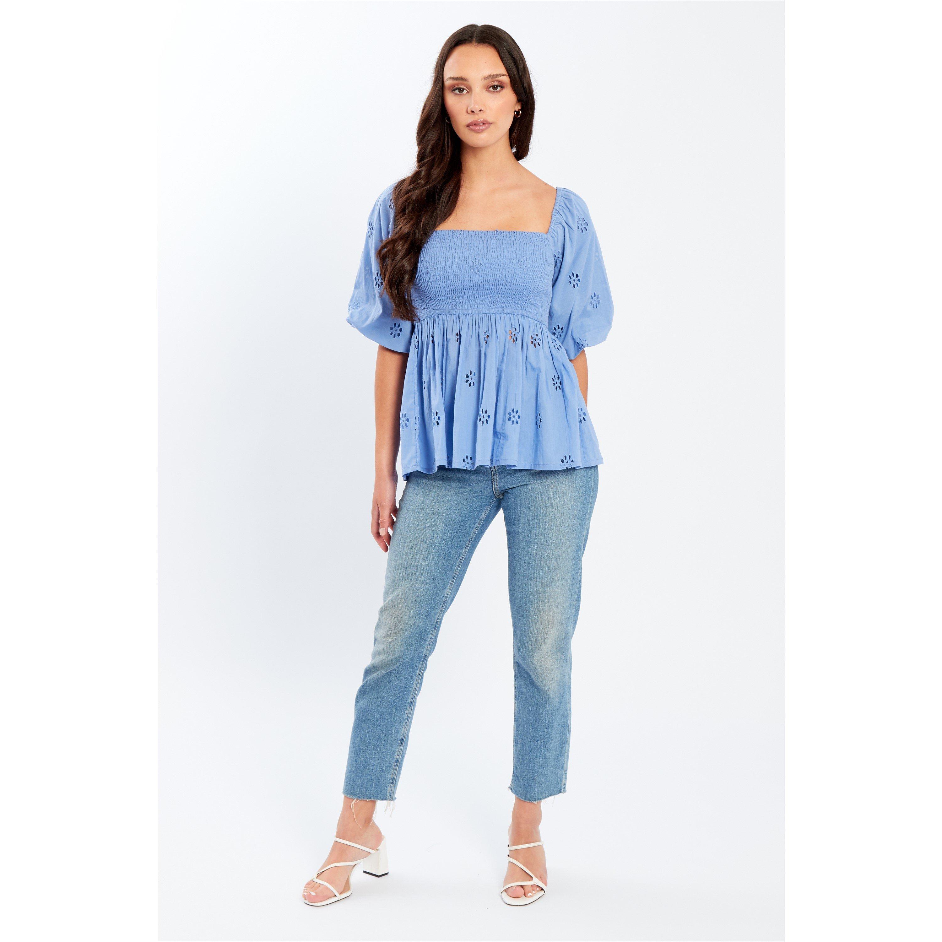 Die Be You Broderie Bluse mit quadratischem Ausschnitt und kurzen Ärmeln kombiniert zarte Stickerei mit einem strukturierten Ausschnitt und schafft eine feminine Silhouette mit klassischem Charme.