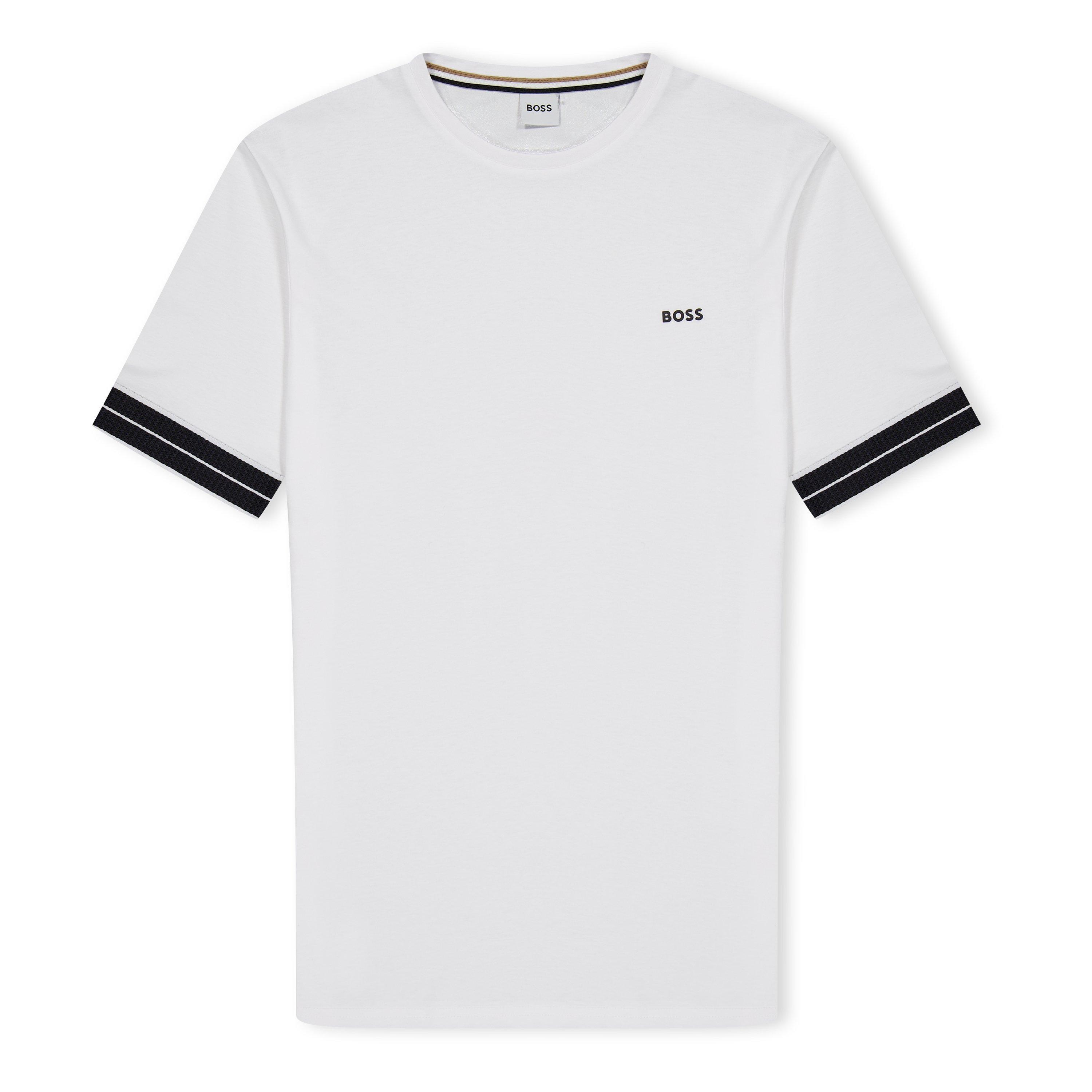 Das BOSS Arm Logo T-Shirt verfügt über einen regulären Schnitt, der angenehme Bewegungsfreiheit ermöglicht. Saubere Linien und hochwertiger Stoff machen dieses T-Shirt zu einer praktischen Ergänzung jeder lässigen Garderobe.