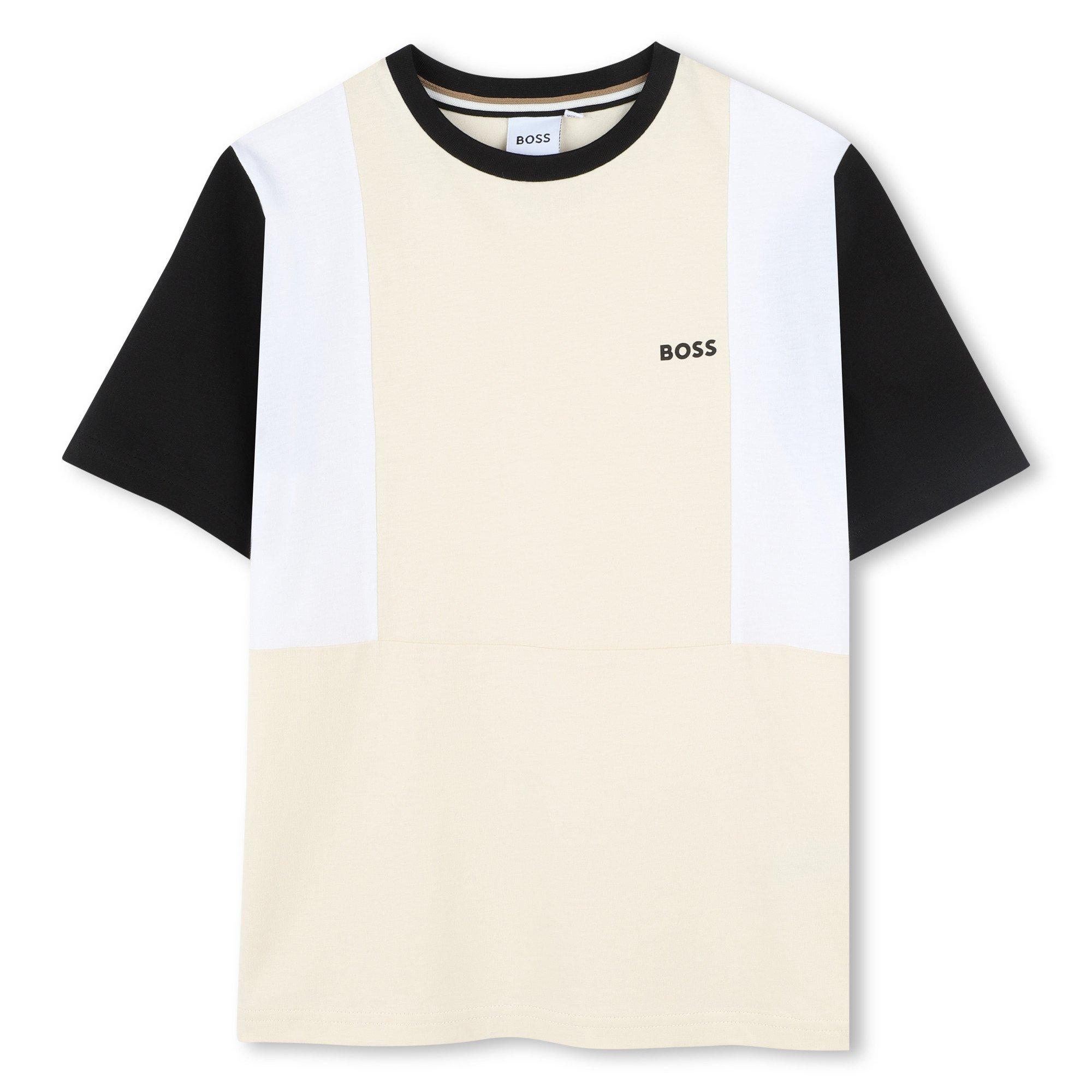 Dieses BOSS Kids' Block Logo T-Shirt bietet klassischen, lässigen Alltagsstil mit sofortiger Markenwiedererkennung. In einer regulären Passform geschnitten, zeigt es das BOSS-Logo prominent, während es die Qualität und den Komfort beibehält, die die Marke definiert.