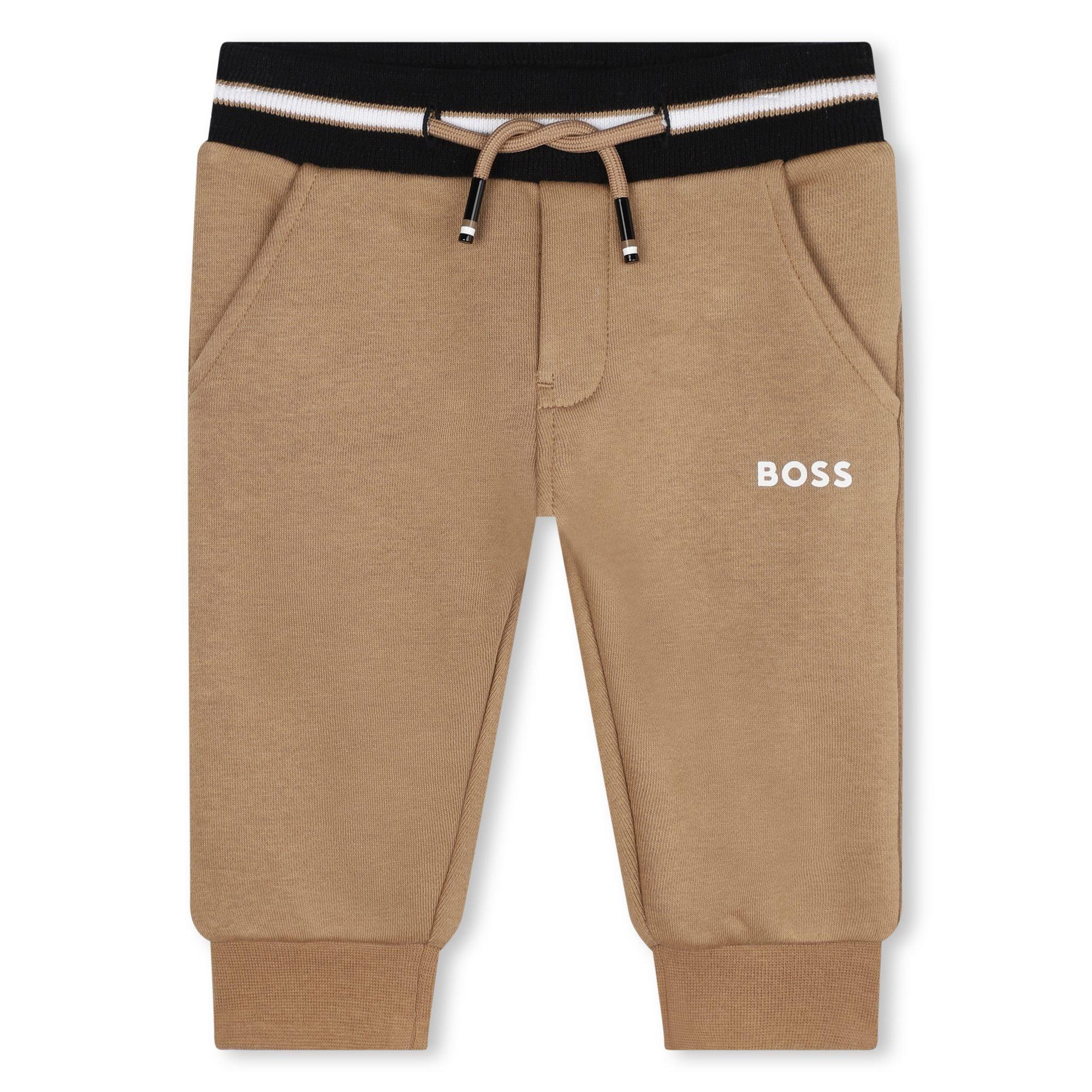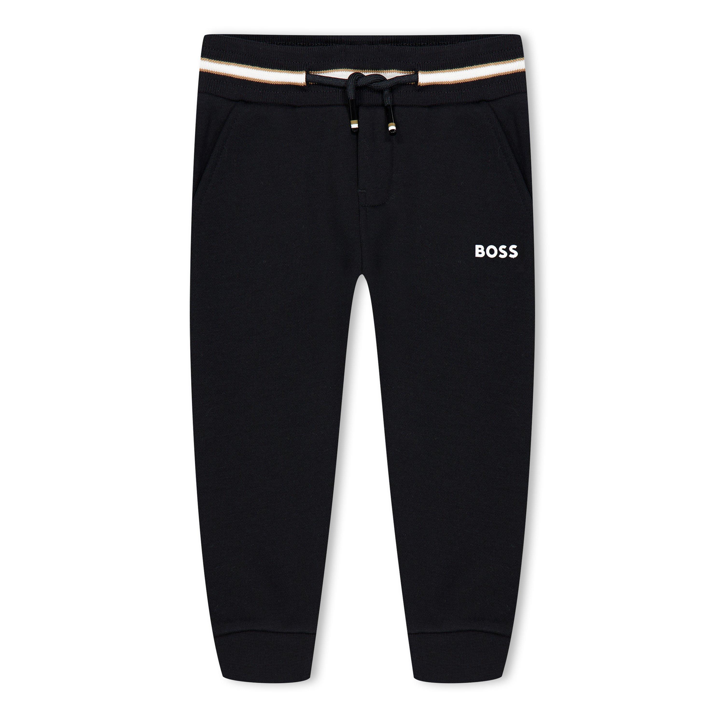 Die BOSS Kinder-Jogginghose aus Jersey verfügt über gerippte Bündchen, die den Sitz sichern, ohne hochzurutschen. Die schlanke Form sorgt für Komfort beim aktiven Tragen.