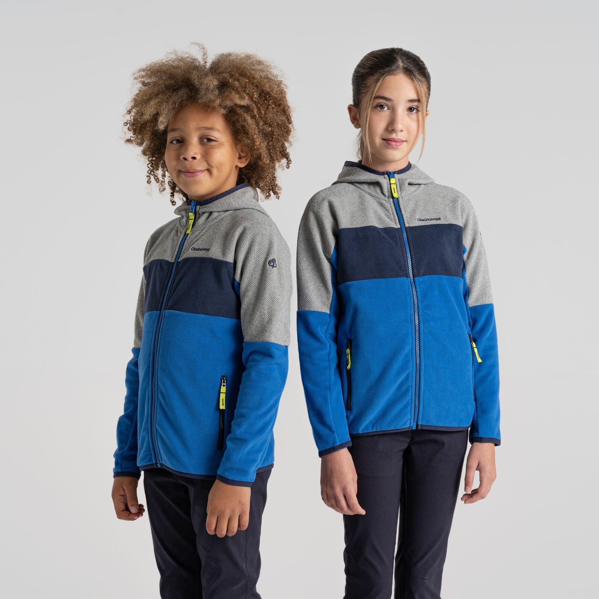 Die Craghoppers Unisex Kinder Crag Linden Full-Zip Fleece bietet essentielle Wärme mit praktischen Designelementen. Diese Außenjacke verfügt über einen durchgehenden Reißverschluss, der eine einfache Temperaturregulierung ermöglicht und gleichzeitig ein schlankes Profil für aktive junge Entdecker beibehält.
