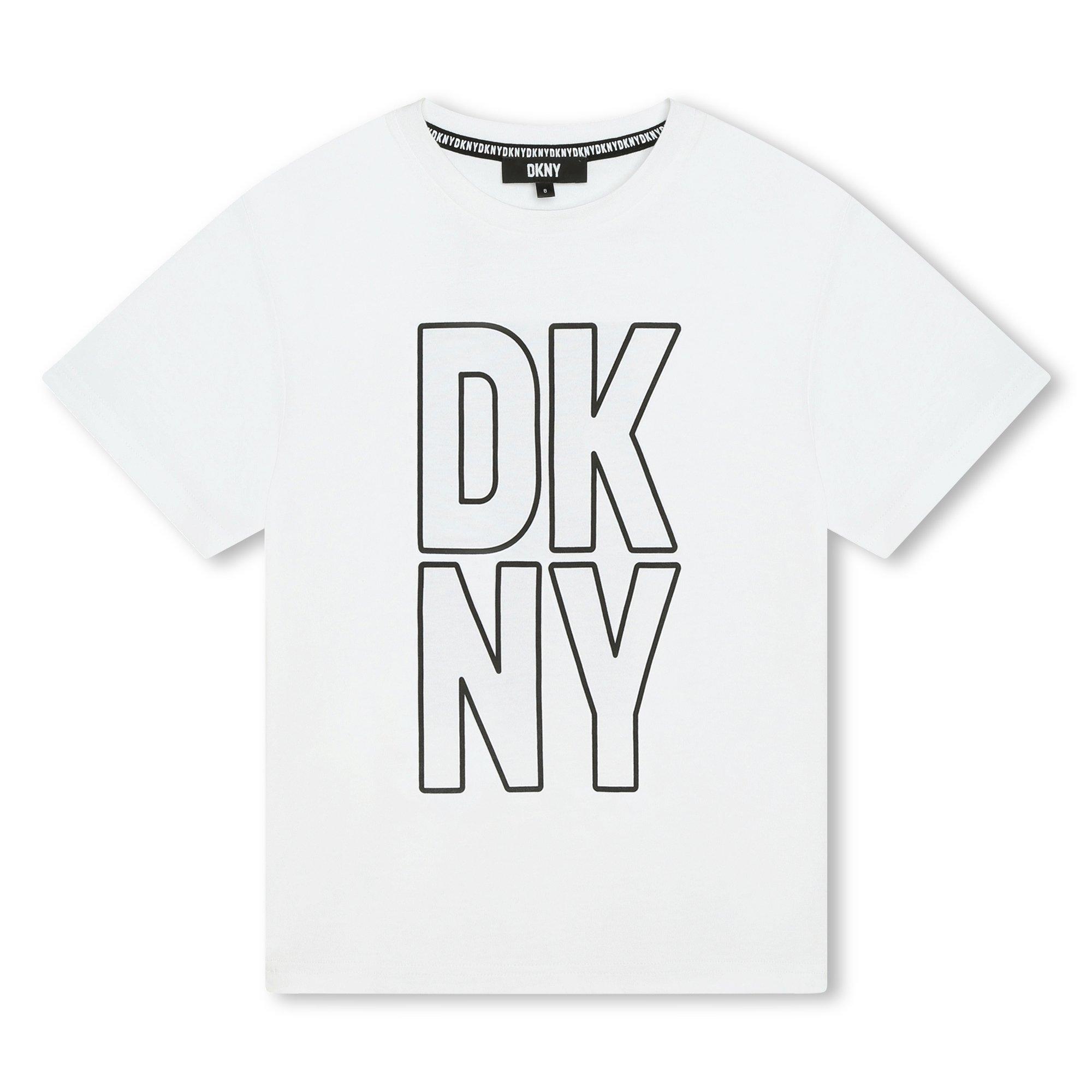 Das DKNY Kids' Logo T-Shirt hat einen regulären Schnitt mit klaren Linien und einem schlichten Profil. Eine markante Markenidentität schafft urbanen Charme.