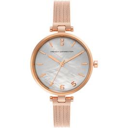 French Connection Rose Case Round Shape Blue Strap Quartz Watch