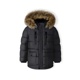 Minoti Girls winter coat with detachable faux fur black
