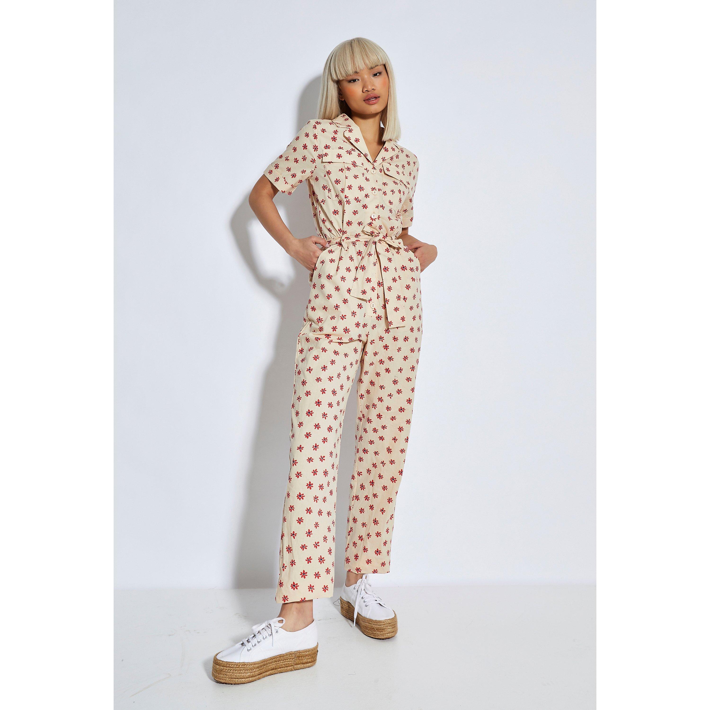 White Pink Cluster Ditsy Jumpsuit