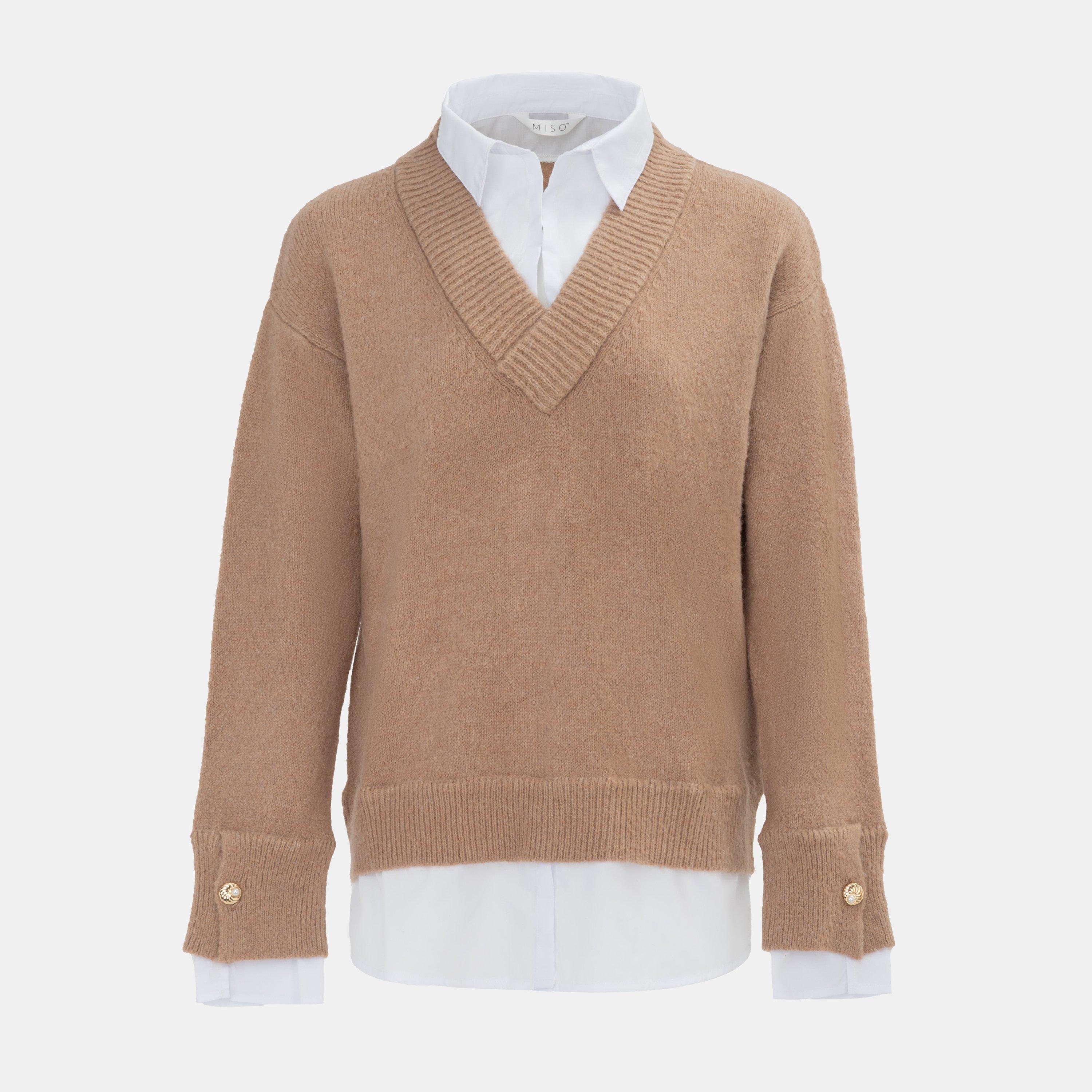 Merkmale: Hemdkragen langärmliger Fake-Zweiteiler Pullover, Revers 2-in-1 Hemd. Fügen Sie Ihrem Pullover einen Hemdkragen hinzu, einzigartig und modisch, warm und vielseitig zugleich.