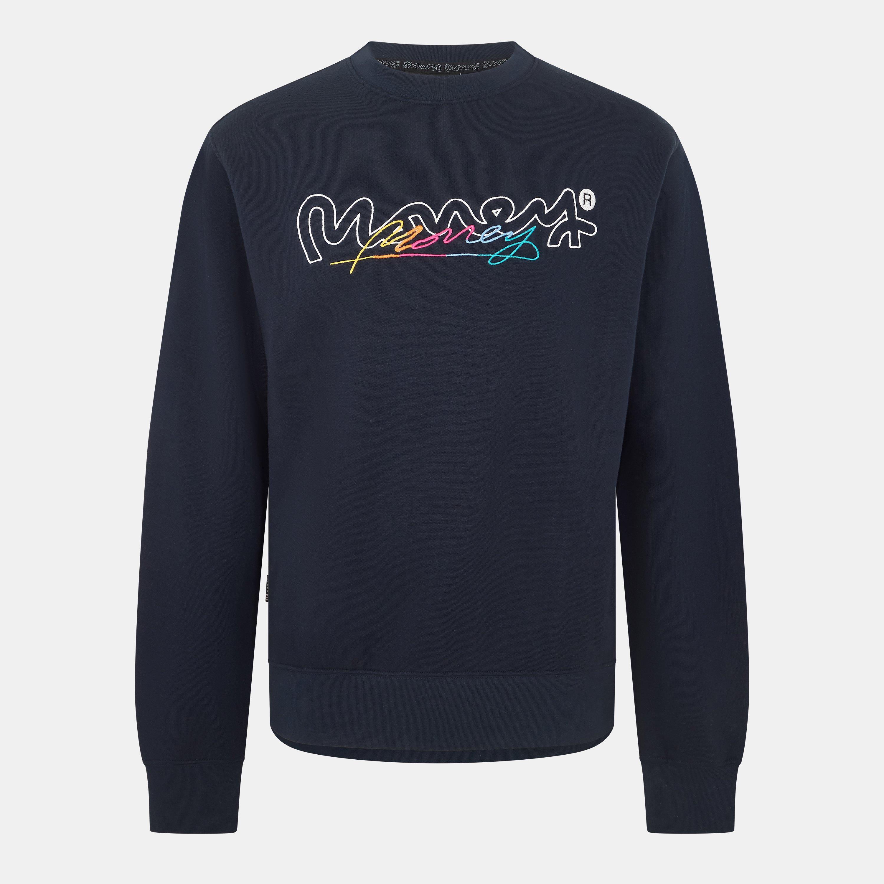 The Money Vice Crew makes a bold statement with a mix of print and thread embroidery for the Money Signature in multi colour embroidery on the front creating a strong branding touch. Crafted from 100% cotton, this crew neck sweatshirt is designed for both comfort and style. Featuring a regular fit and a ribbed crew neck, it provides a timeless look with a plush feel, perfect for adding a touch of luxury to your casual wardrobe. This piece is an ideal blend of comfort and standout style, making it a must-have in any contemporary collection.