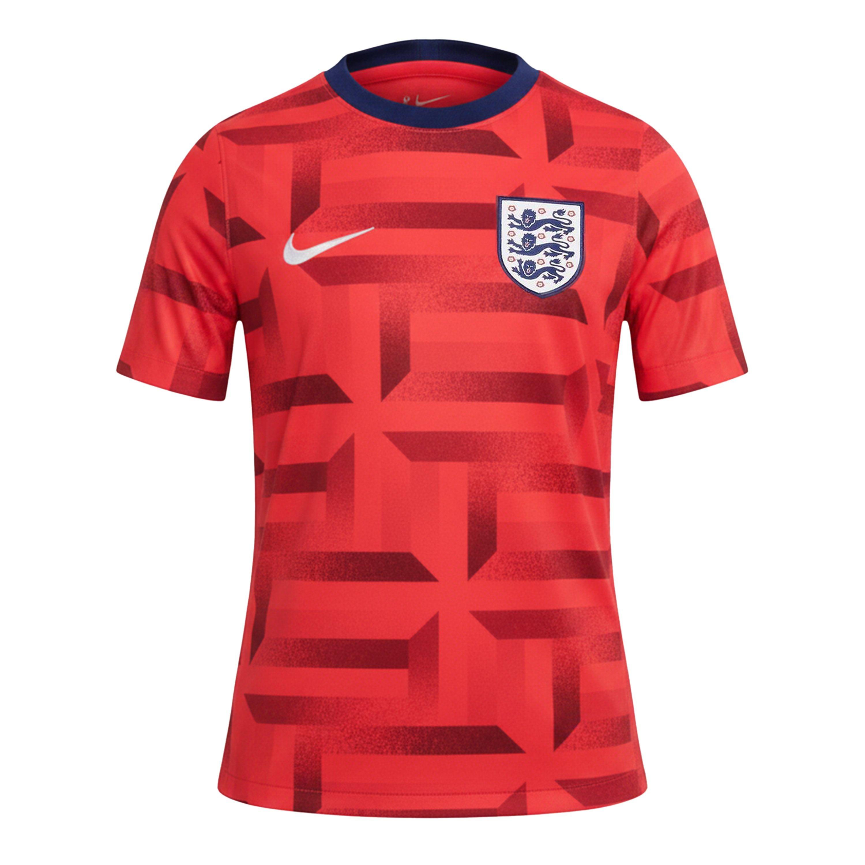 Die lebendige Sirenenrot- und Blau-Leere-Farbgebung mit dem auffälligen Allover-Design verleiht ihrem Spiel-Ensemble einen Hauch von Flair. Die ikonische Nike-Logo-Stickerei und das England-Teamwappen auf der Brust symbolisieren die unerschütterliche Hingabe Ihres kleinen Fans an das Spiel. Ob sie ihr Team von den Rängen aus anfeuern oder das Feld im Sturm erobern, das Nike England Academy Pro Pre Match Shirt 2024 Juniors ist Ihr ultimativer Begleiter.