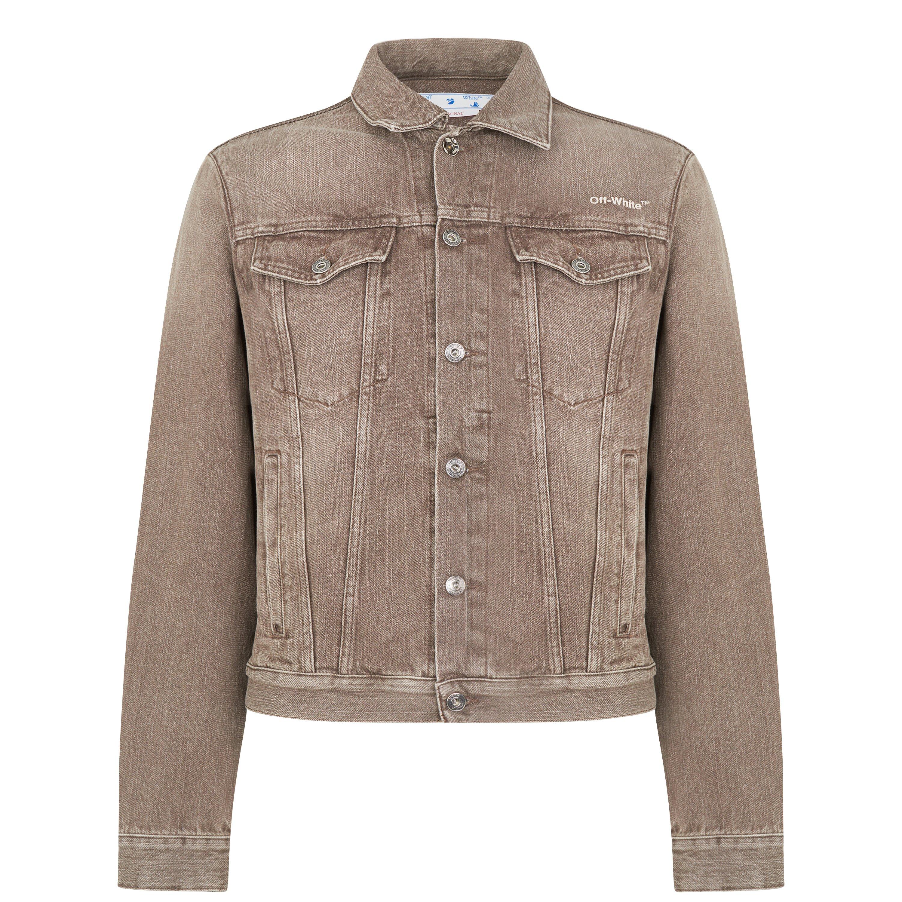 Die Off-White Tab Slim Denimjacke zeichnet sich durch ein steifes Design aus, das das diagonale Motiv der Marke auffällig auf dem Rücken präsentiert. Mit einem Punktkragen und geknöpften Brusttaschen behält dieses klassische Designerstück seinen authentischen Charakter und bietet gleichzeitig den zeitgenössischen Edge von Off-White, ideal für lässige Mode-Styling.