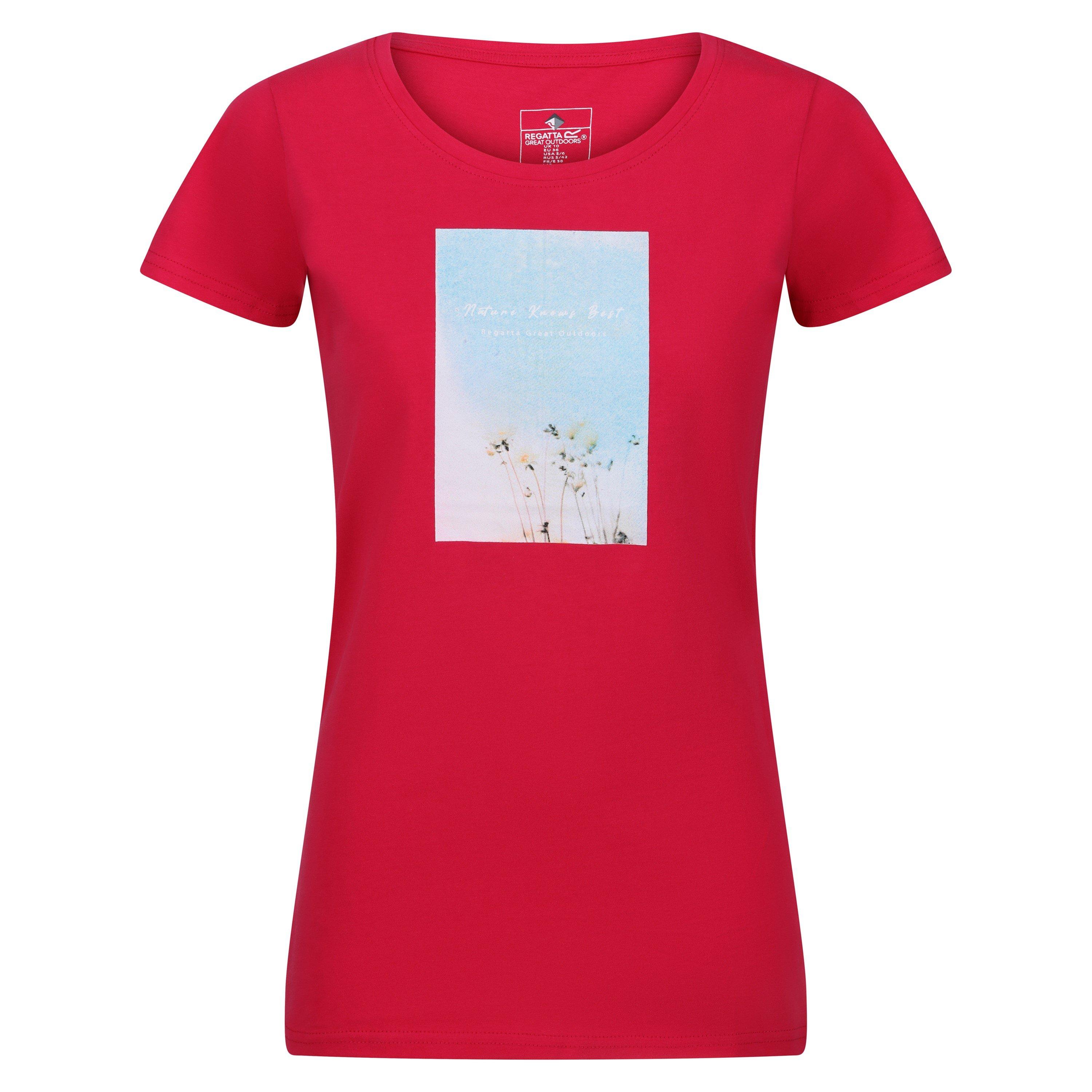 Regatta's Women's Regular Fit T-Shirt has a classic crew-neck shape, making it suitable for a wide range of everyday activities. The precisely balanced proportions of this short sleeve T-shirt deliver a flattering fit that's neither too loose nor too tight, seamlessly transitioning between outdoor pursuits and casual summer settings.