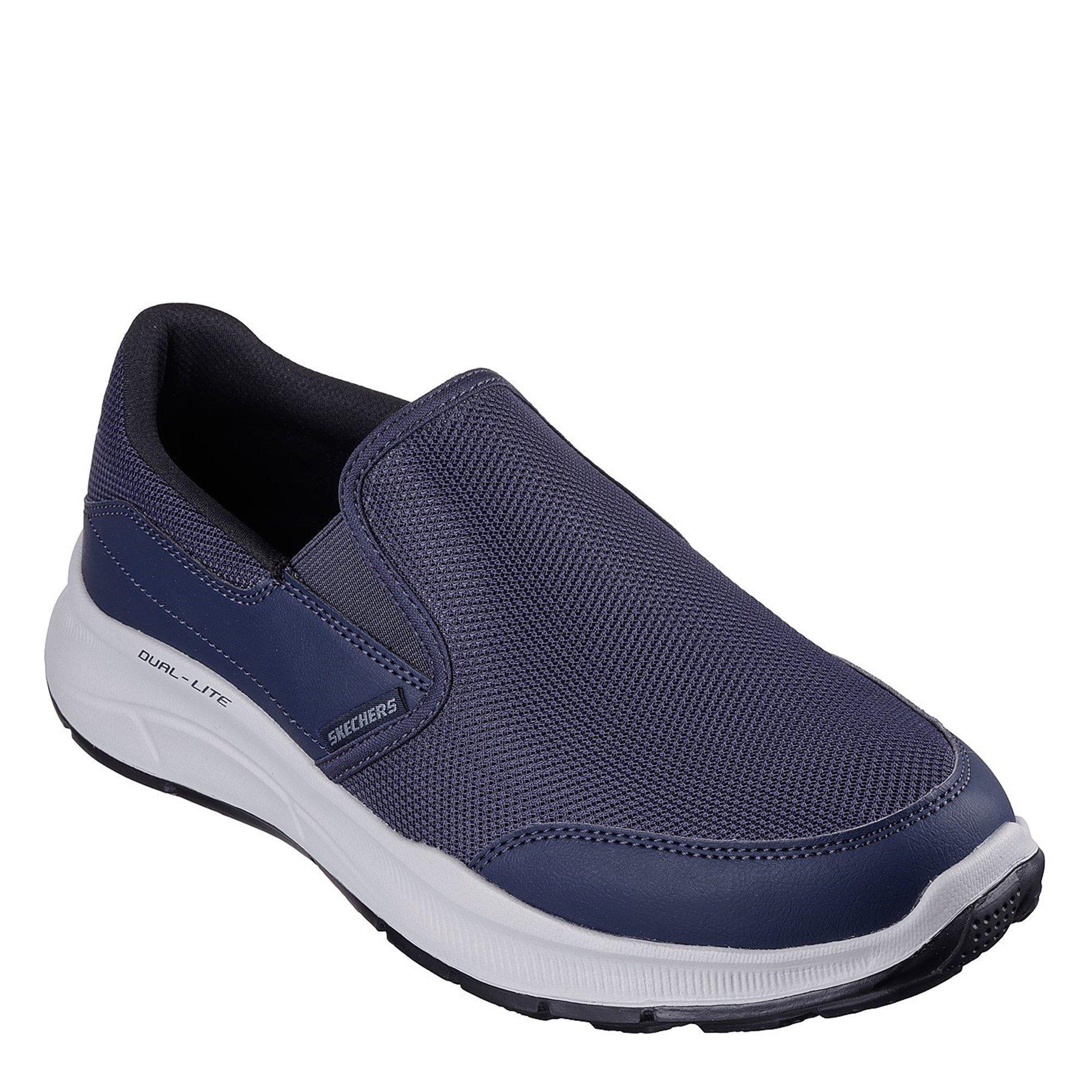 Skechers Entspannte Passform: Equalizer 5.0 - Persistable Trainer. Finde die perfekte Mischung aus lässigem Stil und Komfort mit Skechers Entspannte Passform®: Equalizer 5.0 - Persistable. Dieser schnürlose vegane Stil verfügt über ein Obermaterial aus Mesh und Synthetik mit einer gepolsterten Skechers Air-Cooled Memory Foam®-Innensohle.