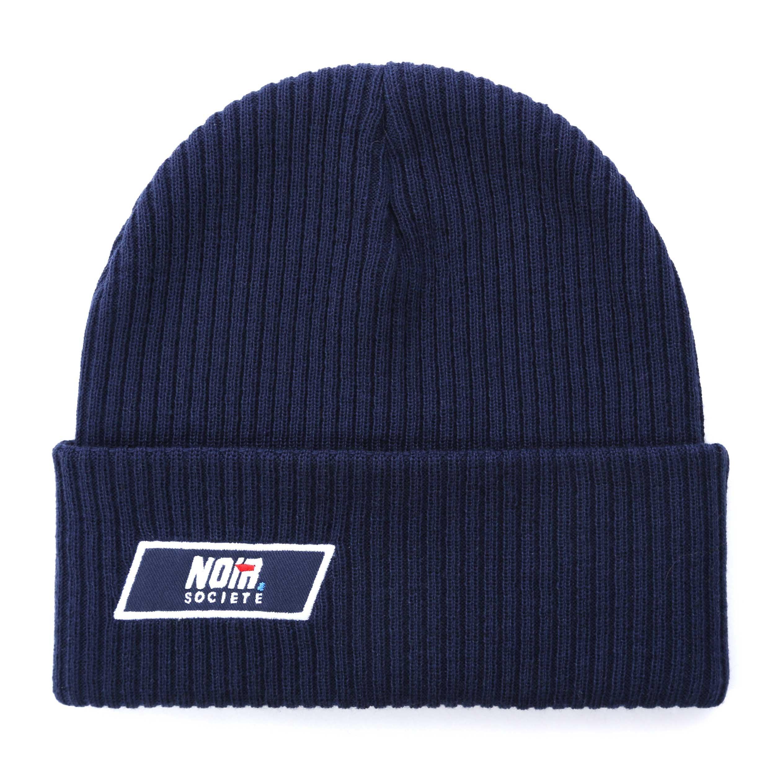 Die Societe Noir Gewebtes Patch Rippstrick-Mütze ist für kaltes Wetter gestaltet und hat einen umgeschlagenen Bund, der die Abdeckung nach Vorliebe anpasst.