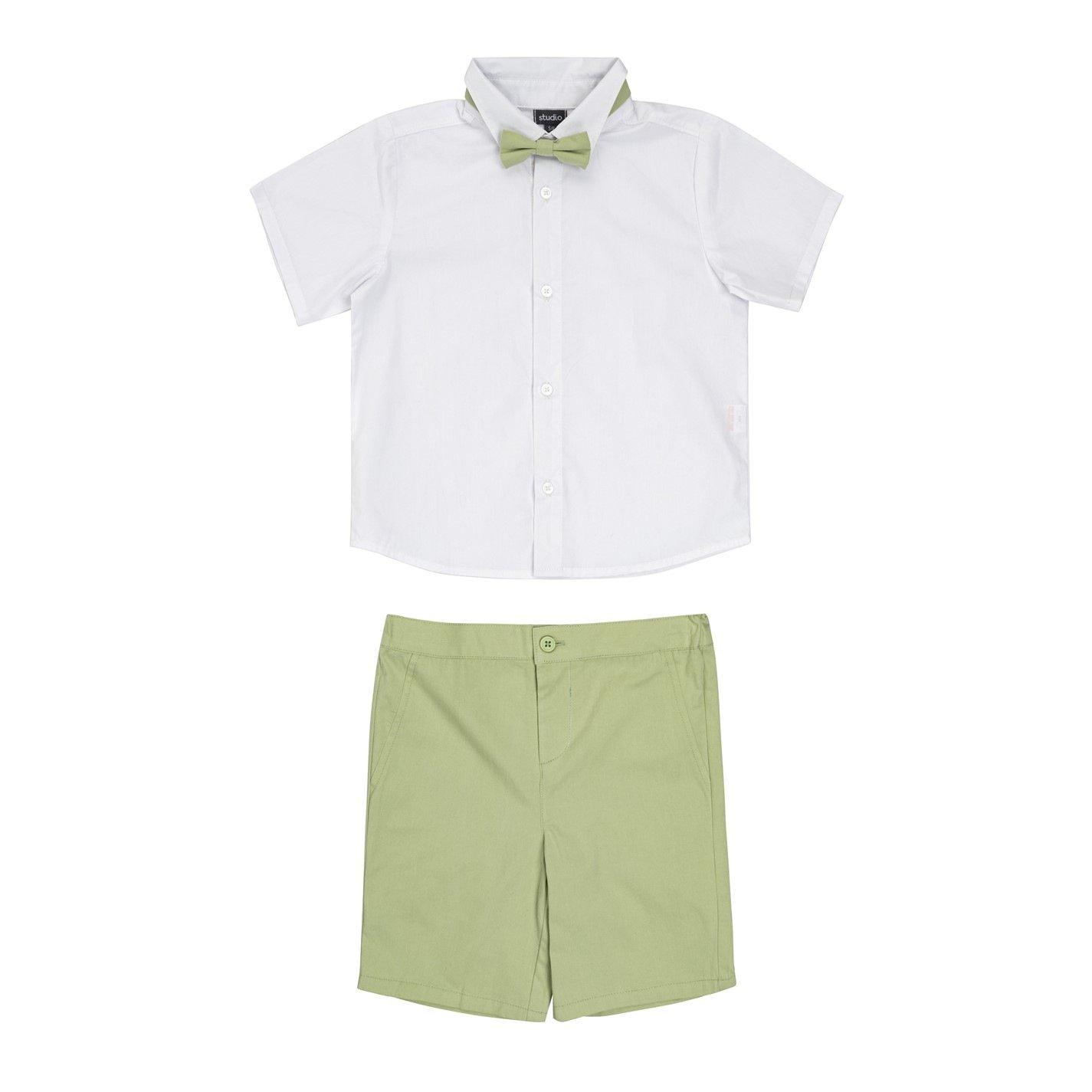 Studio Kids' Kurzarm-Coordinaten bieten einen smarten Stil für besondere Anlässe von Kindern. Dieses regulär geschnittene Dreiteiler-Set verfügt über ein Hemd mit Kragen und Knopfverschluss, das einen koordinierten Look schafft, der sowohl bequem als auch praktisch für Veranstaltungen ist.