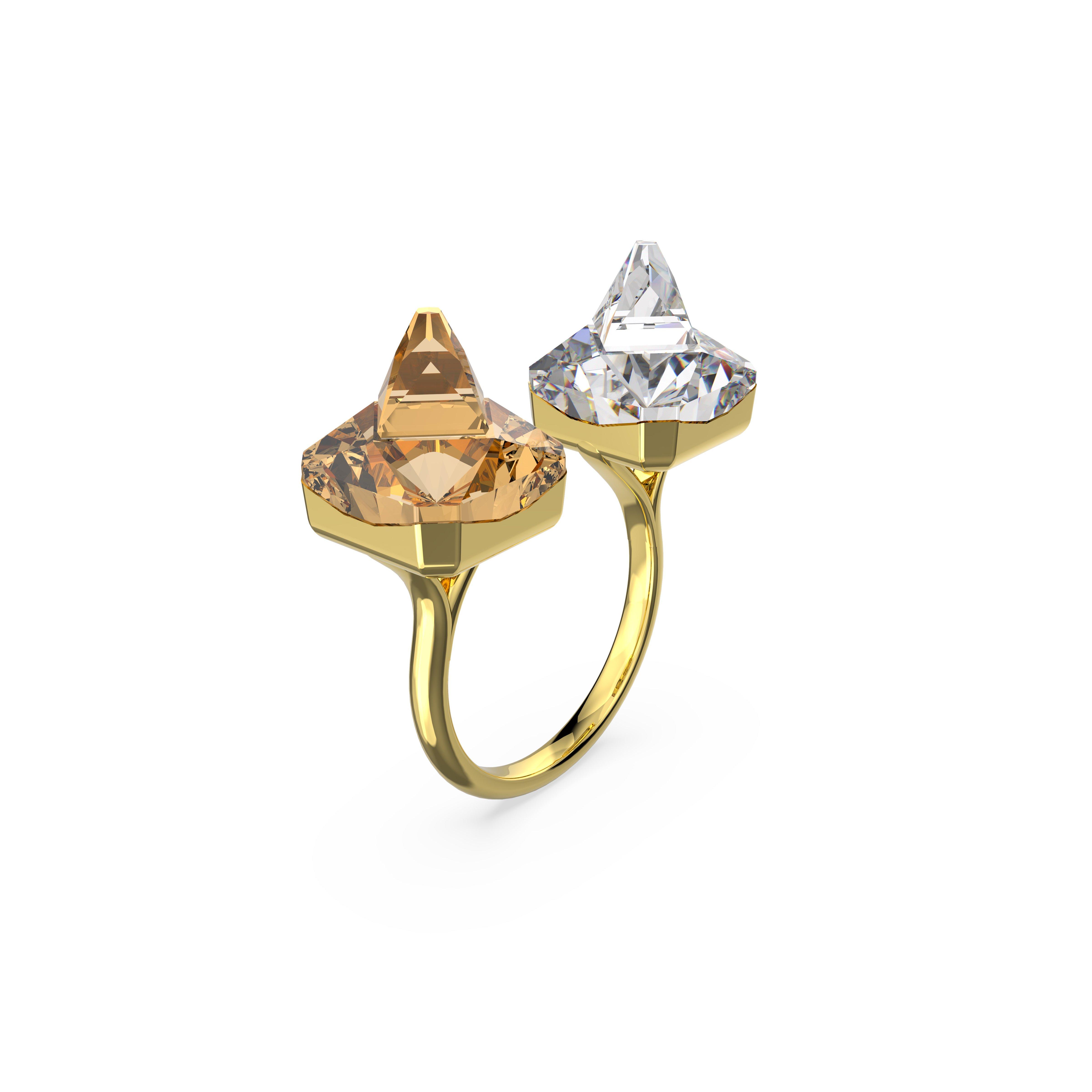 Swarovski Matrix open ring, Pyramid cut, Yellow, Gold-tone plated
