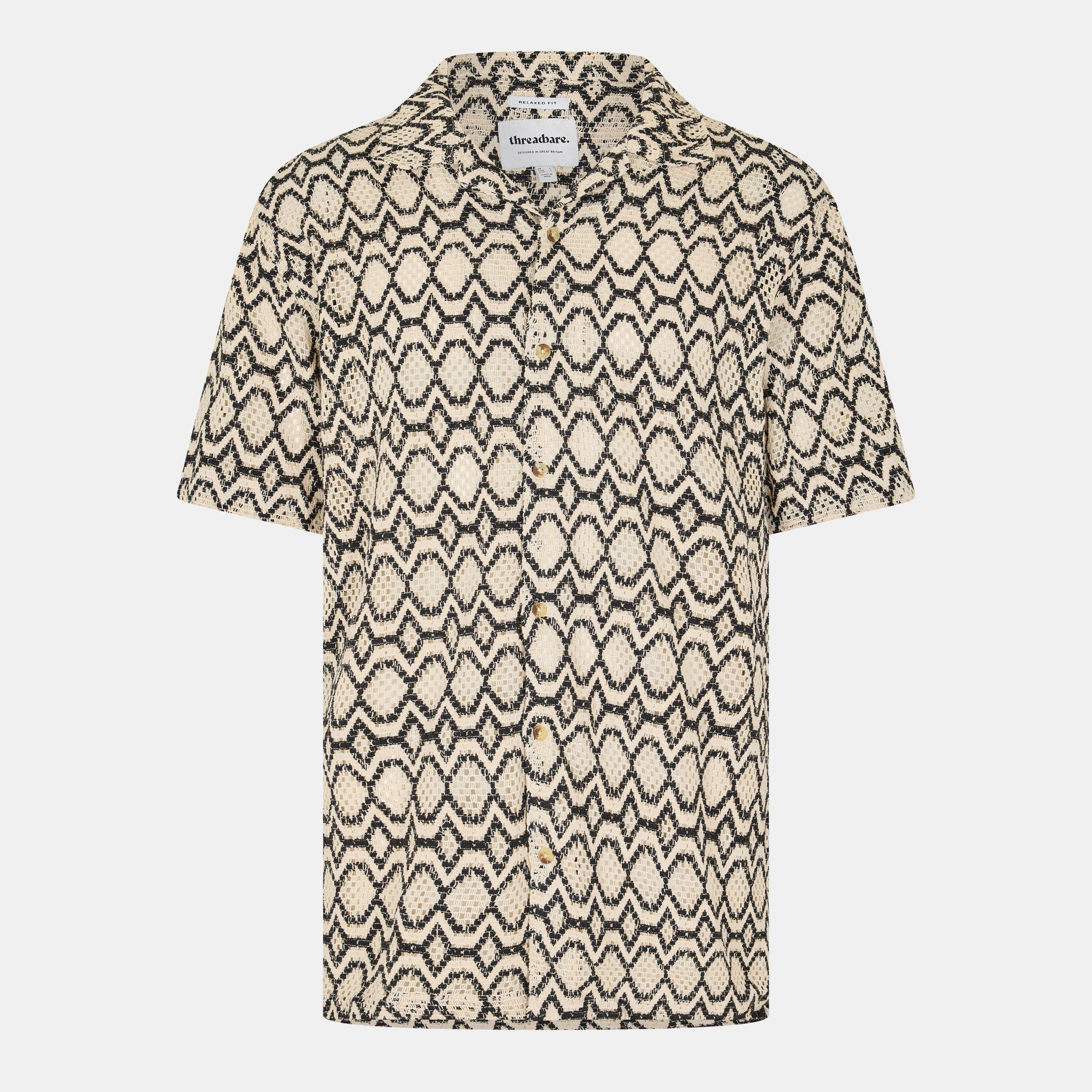 Threadbare's Herren Kurzarmmusterhemd bringt lässiges Selbstbewusstsein mit seinem zeitgenössischen Druck. Das atmungsaktive Design verfügt über einen klassischen Kragen und eine durchgehende Knopfleiste für sommerliches Styling.