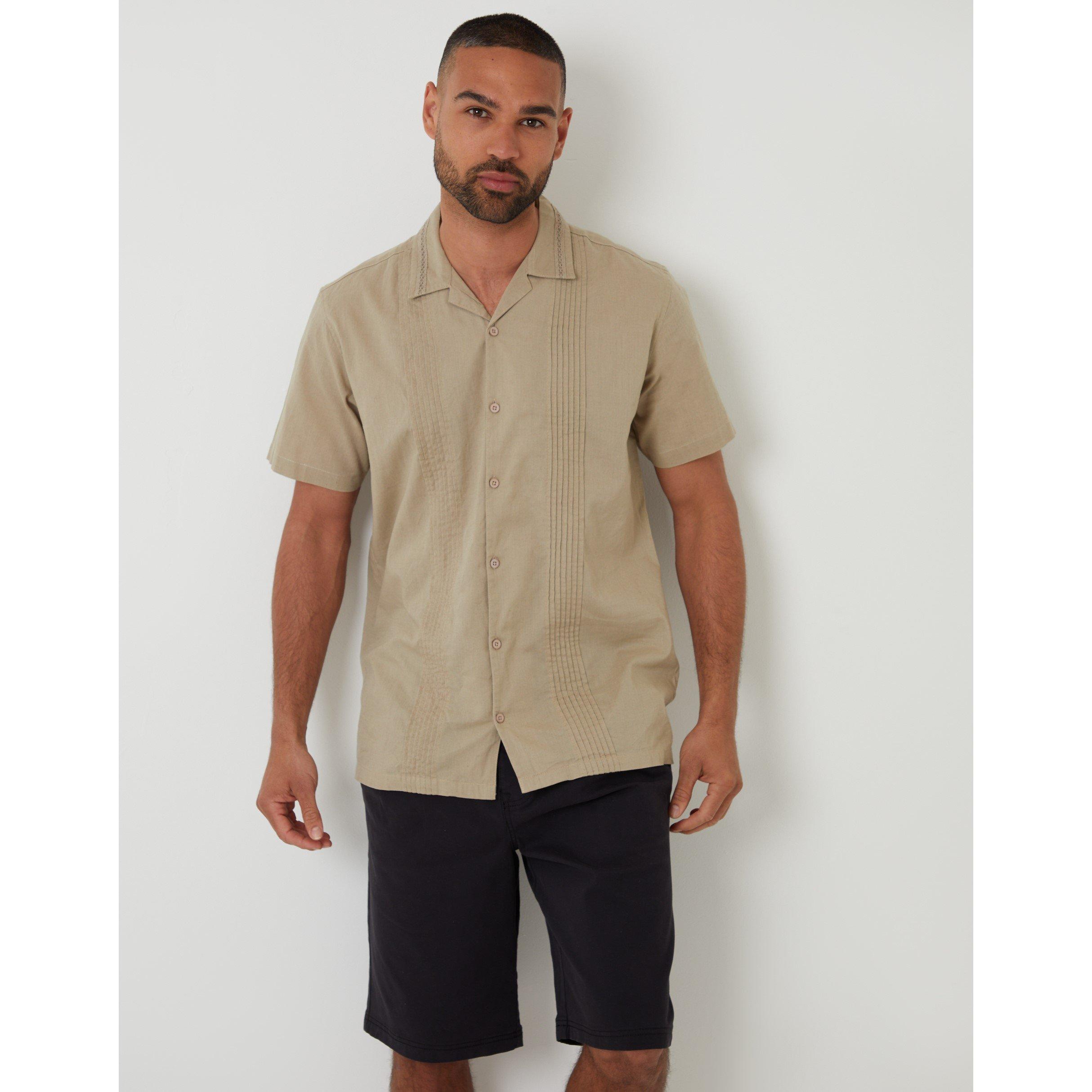 Threadbare's Urmston Kurzarm-Bowlinghemd kombiniert entspannten Urlaubsstil mit modernen Details. Die klassische Bowlingform verfügt über einen Camp-Kragen und einen geraden unteren Saum für einen coolen Look.