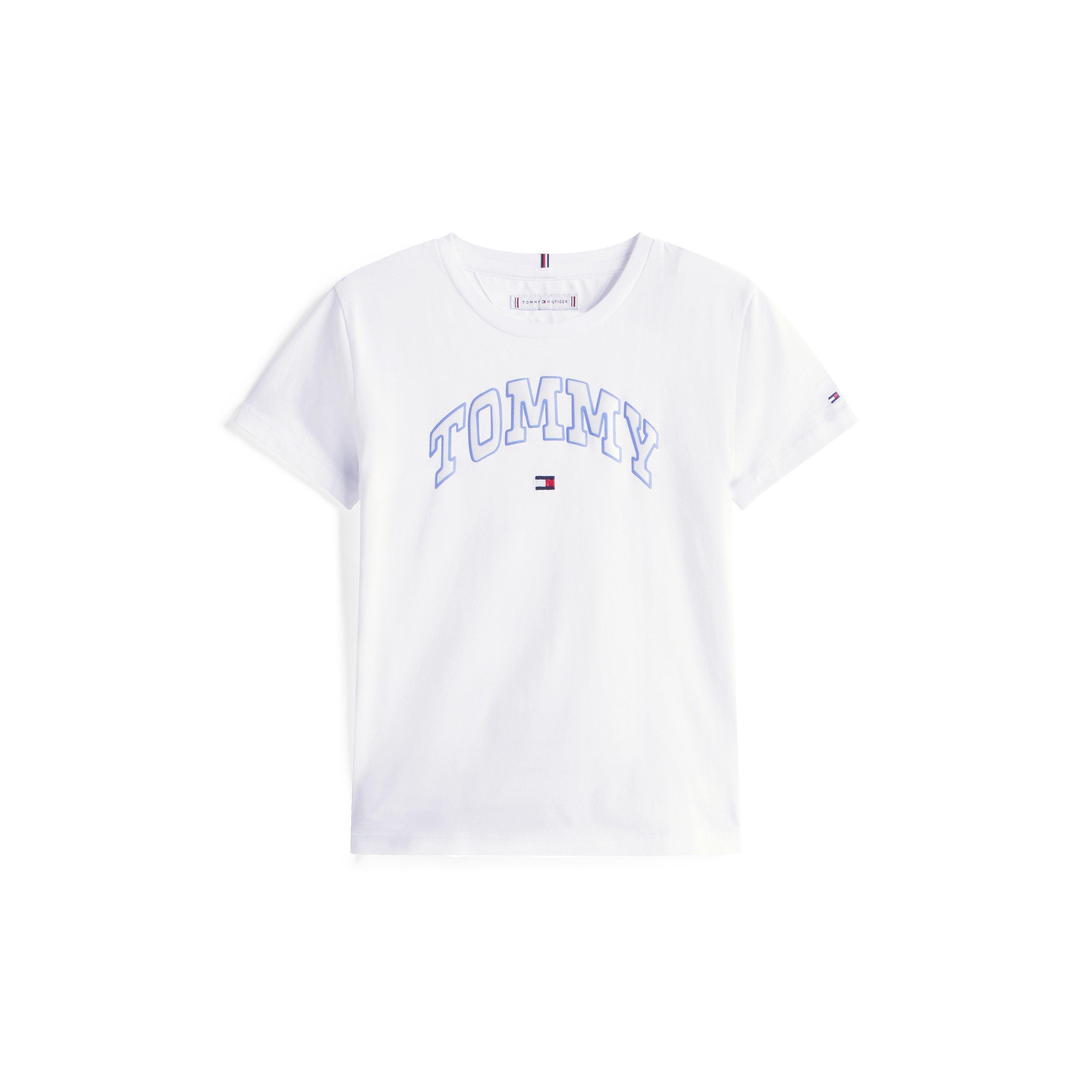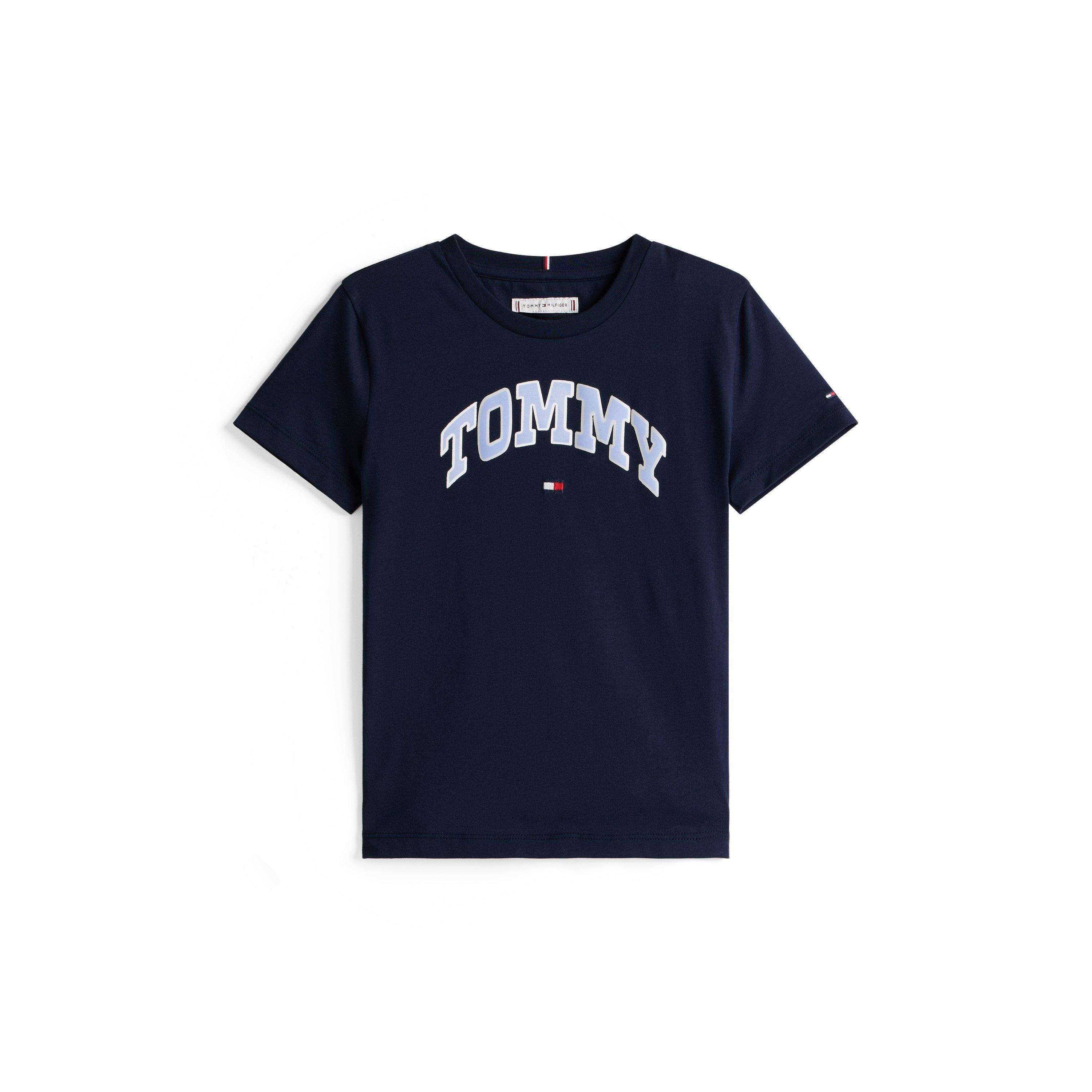 Das Tommy Hilfiger Kids' Varsity Atmungsaktives T-Shirt ist in einem regulären Schnitt gehalten und verfügt über ein von Varsity inspiriertes Branding auf der Brust. Atmungsaktiver Stoff und ein lässiges Design unterstützen aktive Trageweise den ganzen Tag.