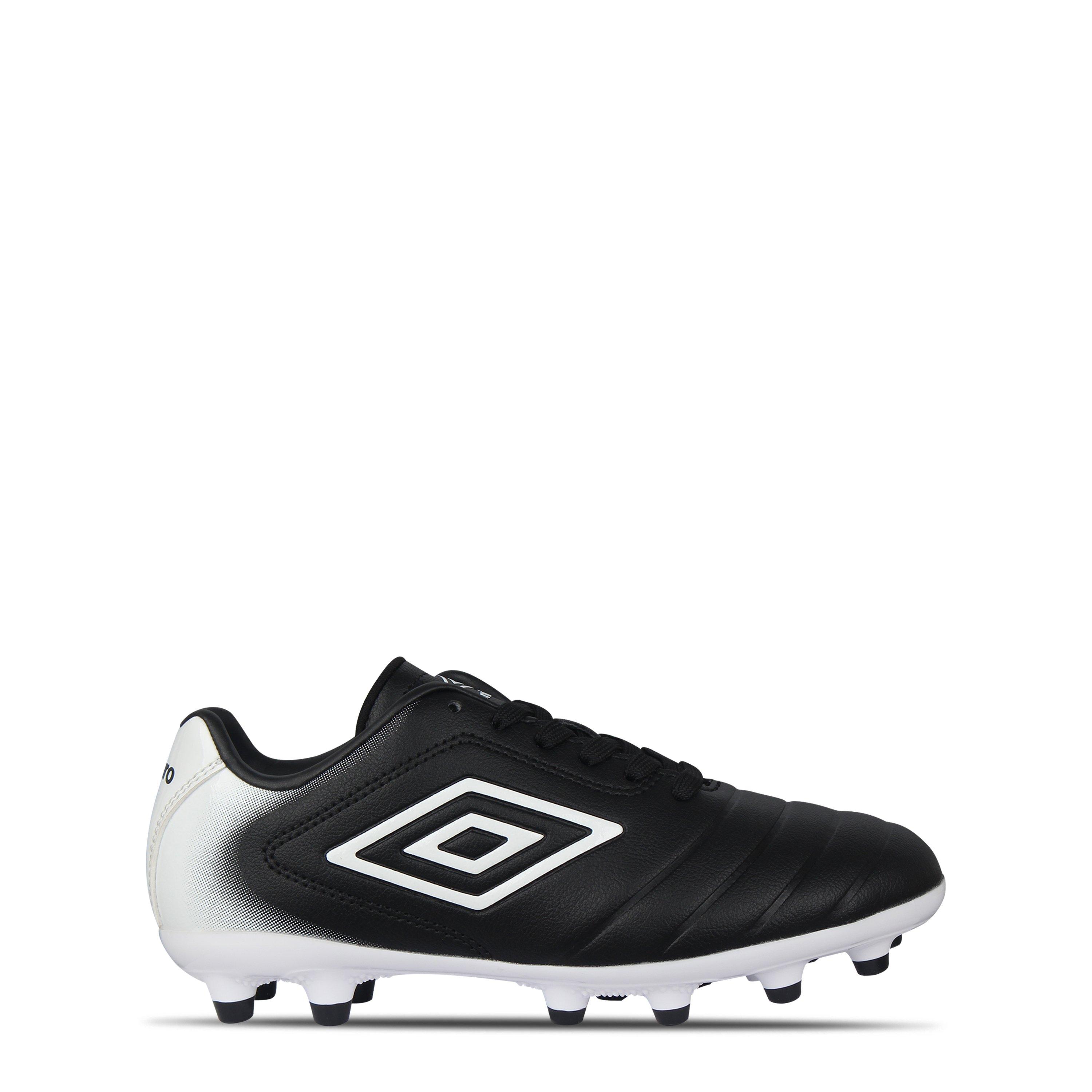 Spiele stilvoll mit diesen Umbro Calcio Fußballschuhen für festen Boden. Hergestellt mit Schnürverschluss und einer geformten Innensohle. 12 geformte Stollen für das Spielen auf festem Boden. Texturierte Details im Obermaterial unterstützen den Ballkontakt und die Kontrolle, alles abgerundet mit Umbro-Branding.